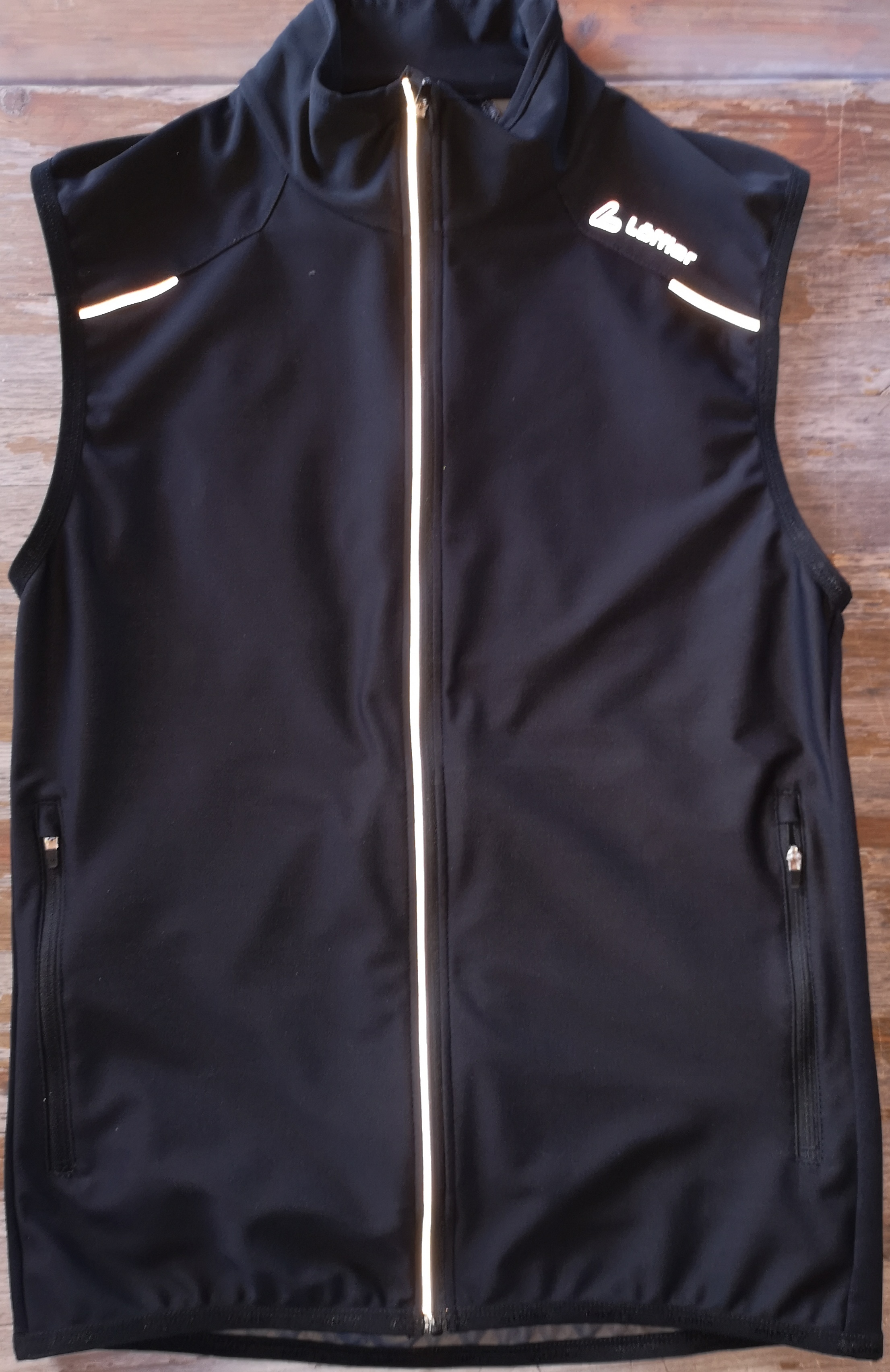 Mit Thermo-Velours light Einsätzen, winddicht, wasserabweisend, atmungsaktiv, elastisch, wärmeisolierend, sehr leicht, Colorblock, Stehkragen, reflektierender Frontzip, ärmellos, 2 Zip-Eingrifftaschen, elastischer Bundabschluss, Reflektoren.
