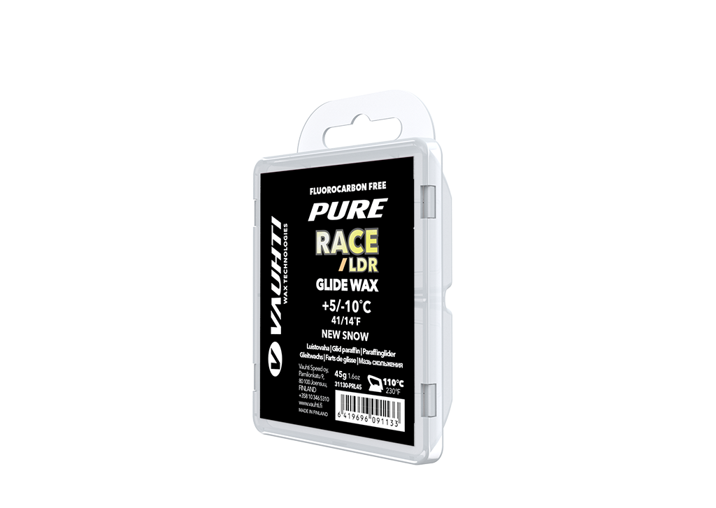 In den neuen fluorfreien Vauhti Wachsen für Neuschnee sorgen hochwertige Wachse, Zinkstearat und Silikonwachs für hervorragende Gleitfähigkeit und Haltbarkeit bei allen Wetterbedingungen. Dieses Wachs erzielt seine beste Leistung auf frischem Naturschnee und feinkörnigem Schnee und erreicht seinen Höhepunkt bei etwa 0 °C, wenn Schnee fällt. Pure Race New Snow wird am besten über einem flüssigen Basiswachs aufgetragen. Packungsgröße: 45 g.