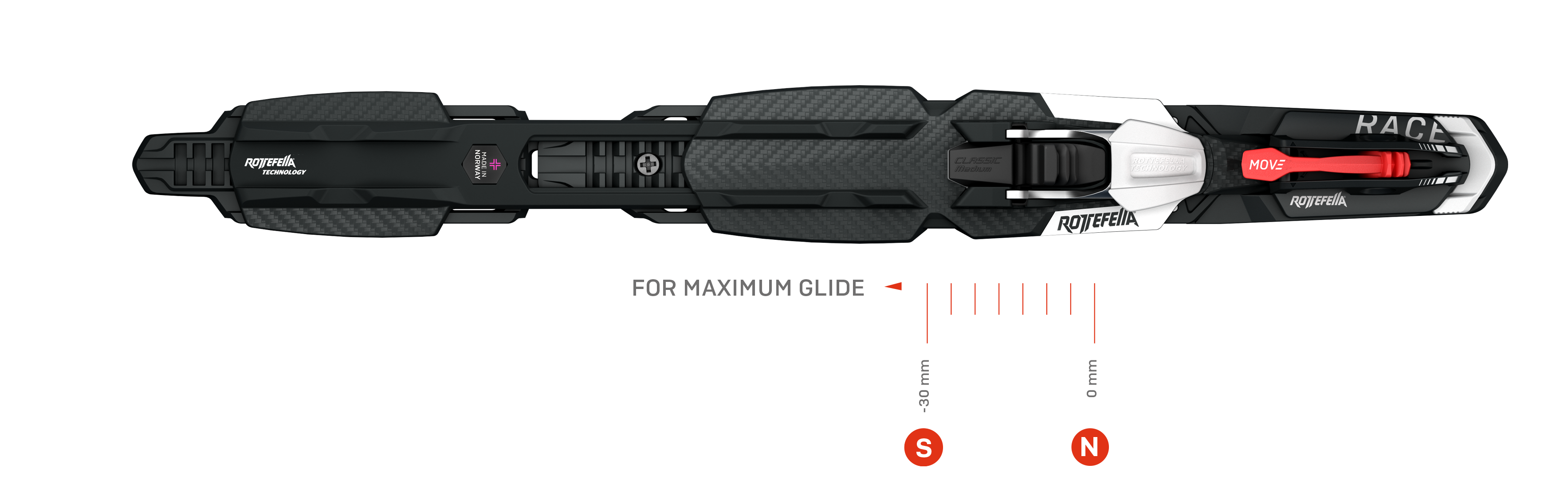 Rottefella Move Race KIT für RMP bietet dir innerhalb von Sekunden maximales Gleiten. Einfach den Hebel anheben, drücken und verriegeln und die Bindung wird mit einer einfachen Bewegung um 30 mm nach hinten bewegt. Perfekt für Wachsski. Rottefella MOVE™ Race ist von der FIS zugelassen und kann in allen Wettbewerben verwendet werden. Rottefella MOVE Race Kit für RMP passt auf alle Ski mit RMP Montageplatte.