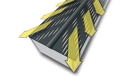 Luftkanäle im Fiberglas-Holzkern sparen Gewicht gegenüber reinen Holzkernen und sind bruchfester. Bessere Flächendruckverteilung.