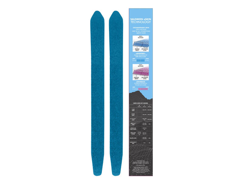 Dieses reine Mohairfell bietet die beste Balance zwischen Grip und Gleiteigenschaften und kann von Hand, also ohne Bügeltape, ausgetauscht werden. Die S-Version ist mit allen Salomon eSKIN-Ski kompatibel, mit Ausnahme der Größen 201 cm und 206 cm (für diese passt die L-Version) und der kürzesten Größen der AERO-Juniorski (131 cm und kürzer), die die XS-Version benötigen.