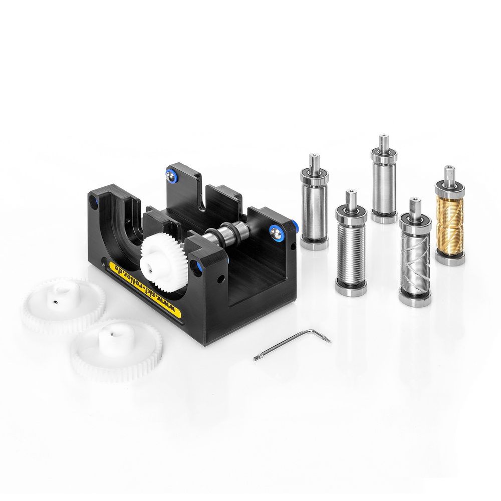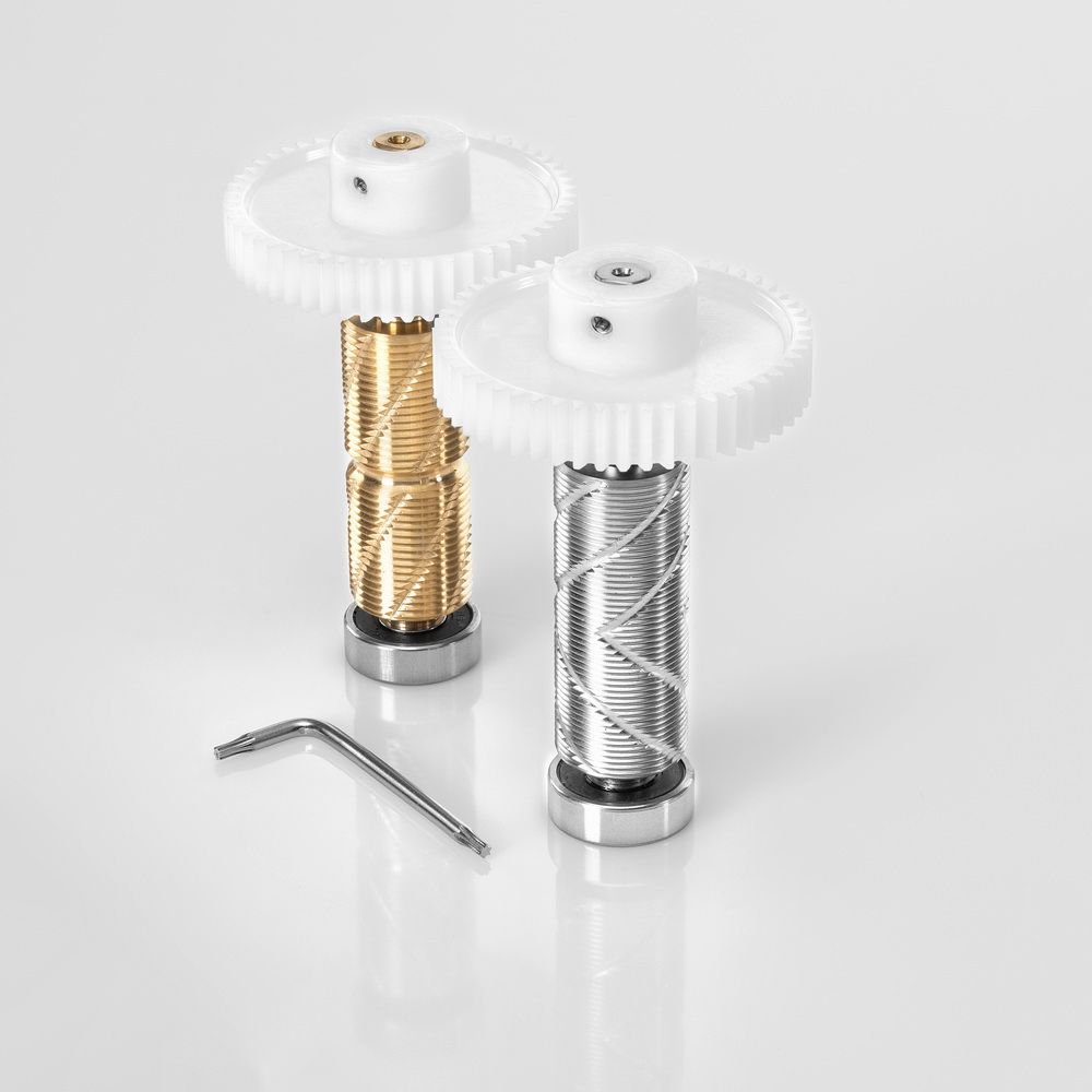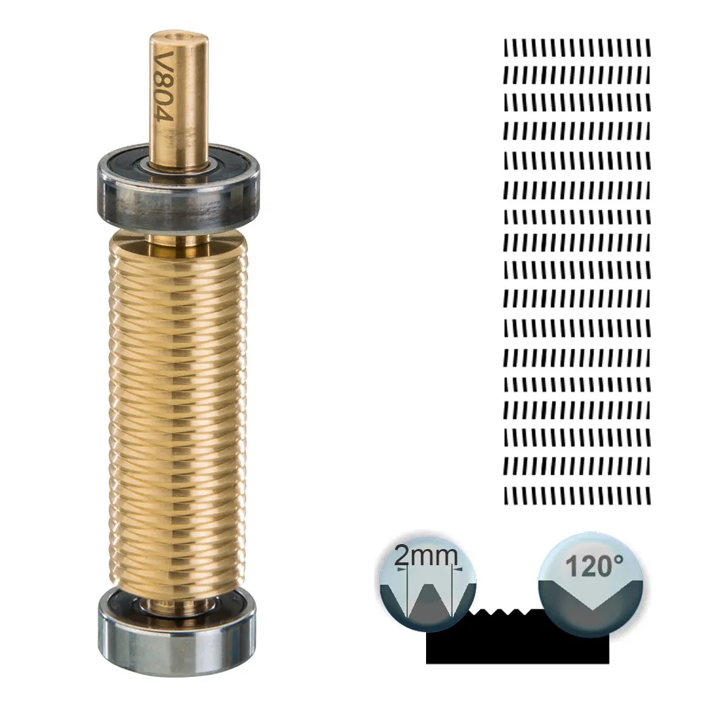 Mit dem Profigerät HSG 2, können lineare, gekreuzte (Schrauben) und angetriebene, gegenläufige Strukturen mit einem Gerät geprägt werden. Bei linearen Strukturen ohne Unterbrechung ist kein Antrieb auf die Strukturwalze (Einsatz mit Führungs-walze), durch entfernen der Führungswalze können Schrauben als Kreuzstrukturen verwendet werden.