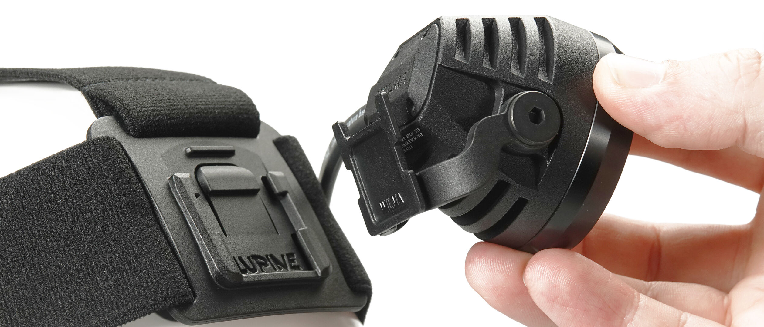 Der Lampenkopf kommt mit dem Lupine FrontClick System und lässt sich einfach auf einen Helm oder ein anderes